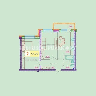2-комн.Площадь: 56.76м2