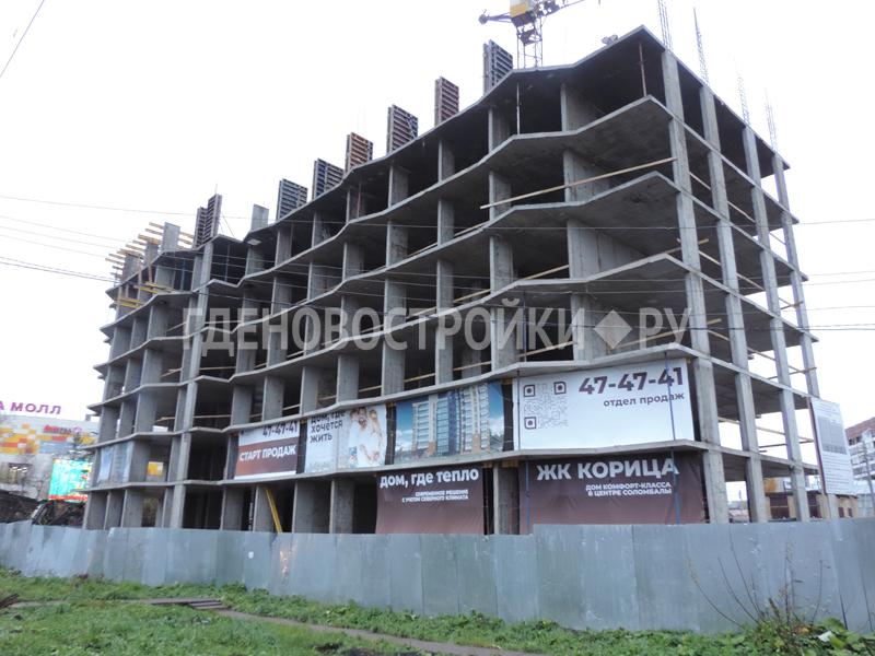 Новый 9-ти этажный жилой комплекс «Корица» возводится в Соломбальском территориальном округе Архангельска, на пересечении улиц Терехина и Советской.