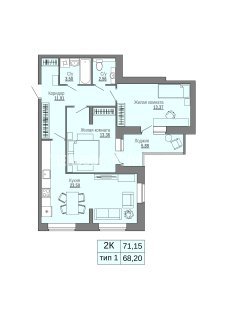 2-комн.Площадь: 71.15м2