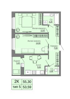 Продажа квартиры: 2-комн., 55.3 кв.м, 7.53 млн.руб. (id:167767)