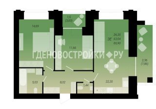 3-комн.Площадь: 66.9м2