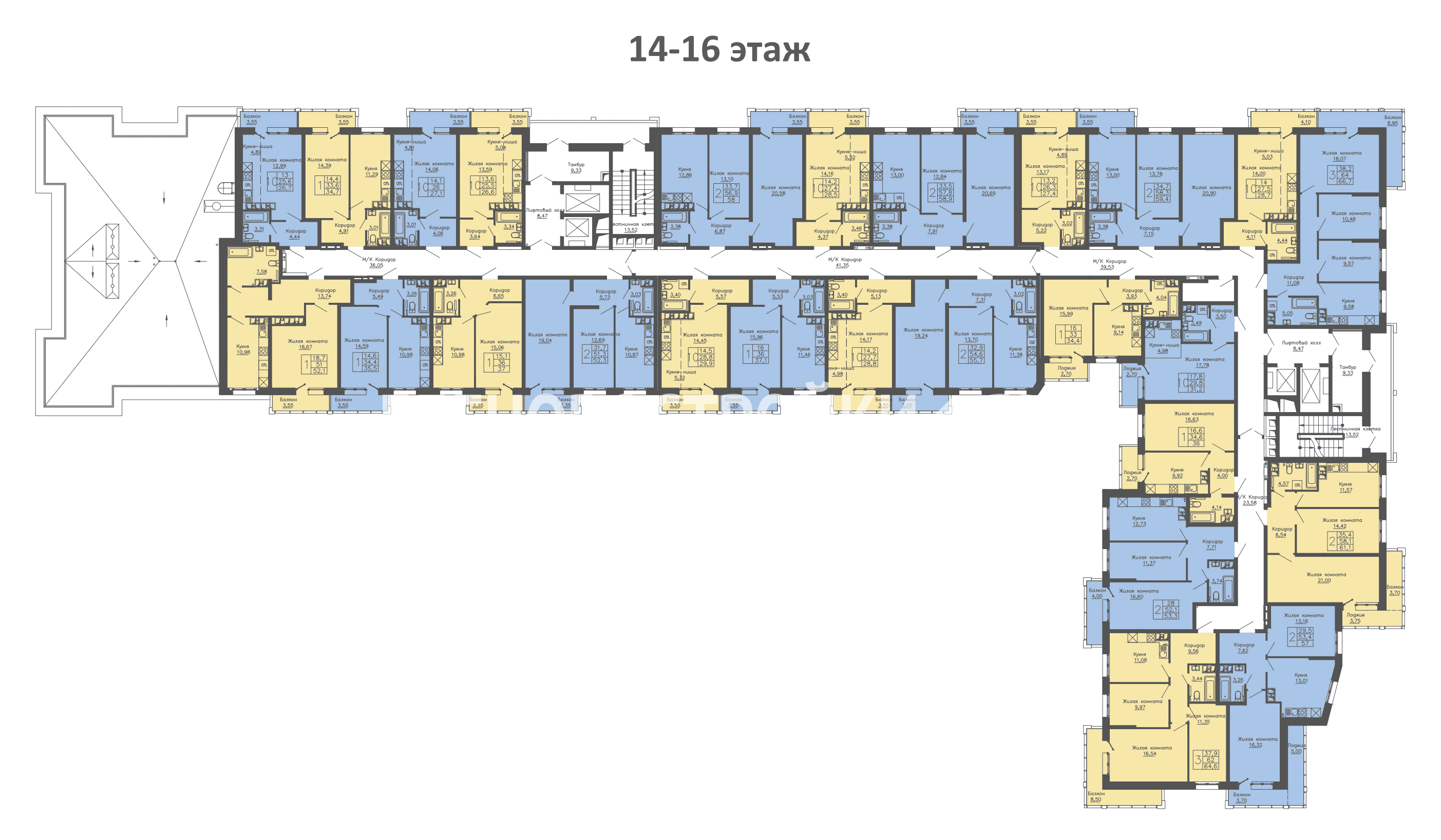 | 3-комн. | от 64.6 кв.м | от 9.19 млн. ₽ |