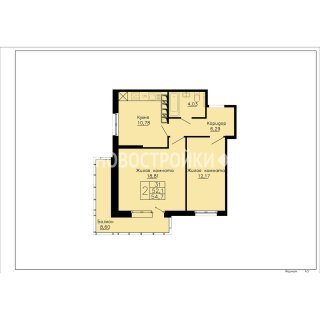 2-комн.Площадь: 54.7м2