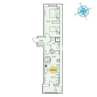 2-комн.Площадь: 48.24м2