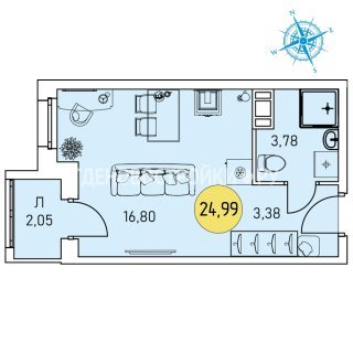 1-комн.Площадь: 24.99м2