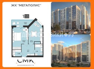 Продажа квартиры: 1-комн., 48.08 кв.м, 7.39 млн.руб. (id:169127)
