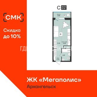 Продажа квартиры: Студия, 27.19 кв.м, 4.74 млн.руб. (id:173911)