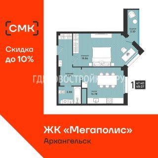 Продажа квартиры: 2-комн., 49.07 кв.м, 7.54 млн.руб. (id:173936)