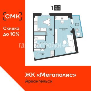 Продажа квартиры: 1-комн., 39.56 кв.м, 6.6 млн.руб. (id:173942)