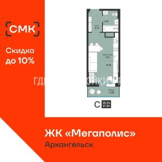 Продажа квартиры: Студия, 27.26 кв.м, 4.89 млн.руб. (id:173972)