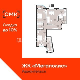 Продажа квартиры: 1-комн., 48.16 кв.м, 7.24 млн.руб. (id:173986)