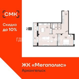 Продажа квартиры: 2-комн., 78.25 кв.м, 12.01 млн.руб. (id:174797)