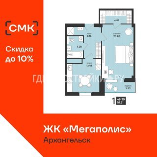Продажа квартиры: 1-комн., 51.31 кв.м, 8.16 млн.руб. (id:174806)