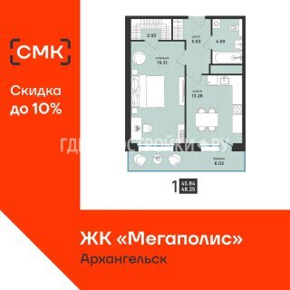 Продажа квартиры: 1-комн., 48.25 кв.м, 9.31 млн.руб. (id:174807)