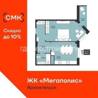 Продажа квартиры: 2-комн., 49.14 кв.м, 7.44 млн.руб. (id:174811)