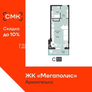 СтудияПлощадь: 27.32м2