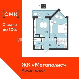 Продажа квартиры: 1-комн., 49.43 кв.м, 7.27 млн.руб. (id:174891)