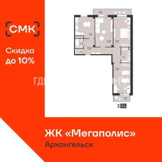 3-комн.Площадь: 103м2