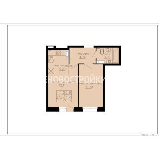 1-комн.Площадь: 38.5м2