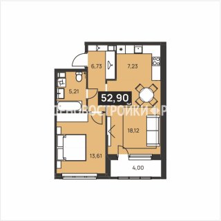 Продажа квартиры: 2-комн., 52.9 кв.м, 6.35 млн.руб. (id:161106)