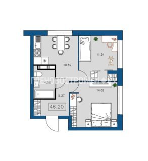 2-комн.Площадь: 46.2м2
