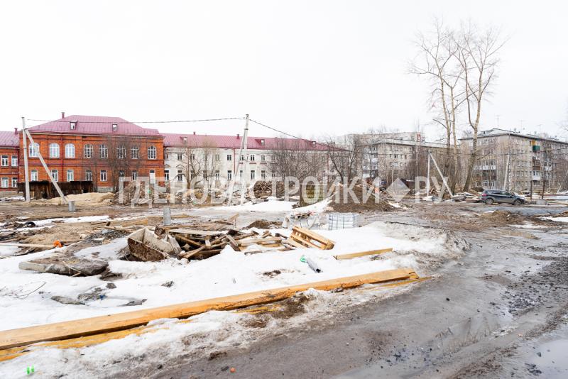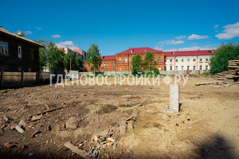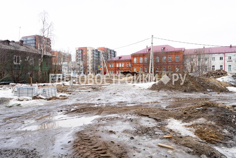 Рядом с домом будет благоустроенный новый сквер. Концепцию благоустройства сквера разработал известный архангельский архитектор Дмитрий Яскорский. Особое внимание уделено сохранению существующих деревьев и дополнительному озеленению.