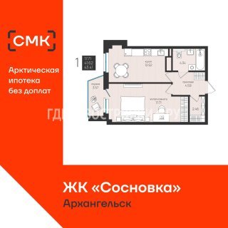 Продажа квартиры: 1-комн., 43.41 кв.м, 5.08 млн.руб. (id:171861)