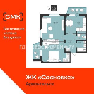 Продажа квартиры: 2-комн., 64.58 кв.м, 6.97 млн.руб. (id:171870)