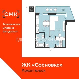 Продажа квартиры: 1-комн., 40.24 кв.м, 5.15 млн.руб. (id:171871)