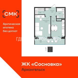 Продажа квартиры: 1-комн., 39.41 кв.м, 4.69 млн.руб. (id:171876)