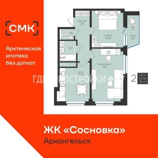 Продажа квартиры: 2-комн., 55.49 кв.м, 6.27 млн.руб. (id:171887)