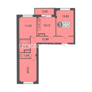 3-комн.Площадь: 66.4м2