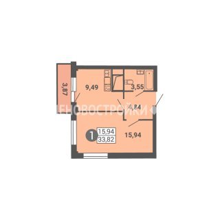 Продажа квартиры: 1-комн., 33.82 кв.м, 4.63 млн.руб. (id:162674)
