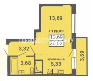 Продажа квартиры: 1-комн., 27.02 кв.м, 3.7 млн.руб. (id:162764)