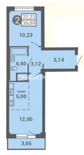 Продажа квартиры: 2-комн., 39.85 кв.м, 5.18 млн.руб. (id:162797)
