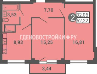 Продажа квартиры: 2-комн., 52.22 кв.м, 4.41 млн.руб. (id:168153)