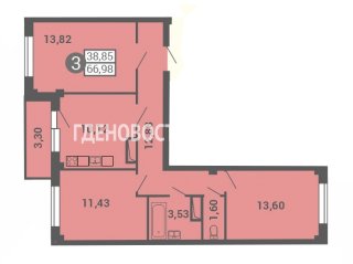 3-комн.Площадь: 66.4м2