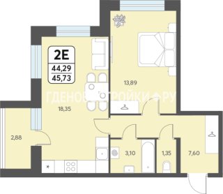 Продажа квартиры: Евро-2-комн., 45.73 кв.м, 5.26 млн.руб. (id:166867)