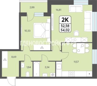 Продажа квартиры: 2-комн., 54.02 кв.м, 6.21 млн.руб. (id:166870)