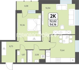 Продажа квартиры: 2-комн., 54.16 кв.м, 6.39 млн.руб. (id:166875)