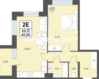 Продажа квартиры: Евро-2-комн., 45.85 кв.м, 5.46 млн.руб. (id:166887)