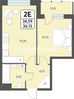 Евро-2-комн.Площадь: 36.13м2