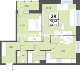 Продажа квартиры: 2-комн., 54.16 кв.м, 6.55 млн.руб. (id:166901)