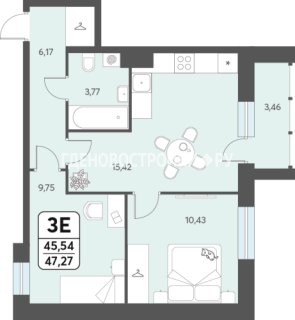 Евро-3-комн.Площадь: 47.27м2