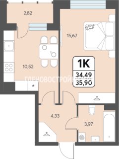 Продажа квартиры: 1-комн., 35.9 кв.м, 4.27 млн.руб. (id:166928)