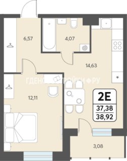 Продажа квартиры: Евро-2-комн., 38.92 кв.м, 4.63 млн.руб. (id:166931)
