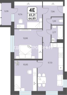 3-комн.Площадь: 66.85м2