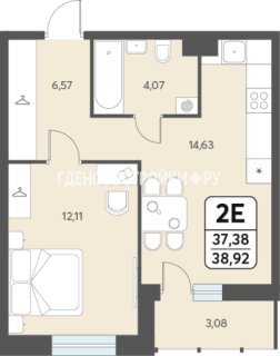 Евро-2-комн.Площадь: 38.92м2
