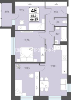 3-комн.Площадь: 66.85м2