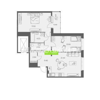 Продажа квартиры: 2-комн., 74.01 кв.м, 14.74 млн.руб. (id:159997)